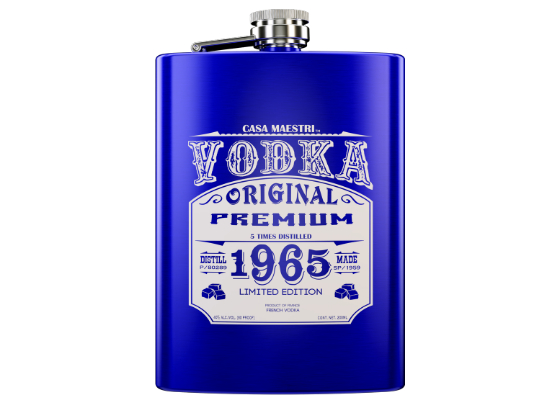蒸留酒を入れるための水筒「フラスクボトル」に、4回蒸留のフランス産ウォッカを詰め込んだ、キャンプやバーベキューなどアウトドアの場面にもピッタリな商品です。